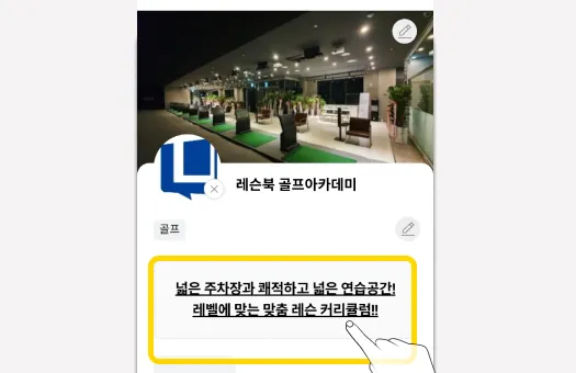 >> 레슨북 어플 ‘센터홍보하기’에서 1.센터계좌등록 > 2.이용상품등록 > 3.주소(매장위치)등록 > 4.홍보등록’버튼을 눌러, 제휴홍보를 시작합니다.