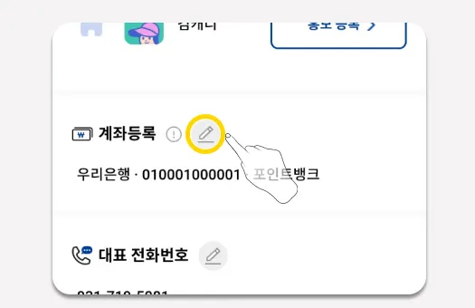 센터홍보하기 페이지에서 ‘계좌등록’ 버튼을 눌러, 센터 계좌등록 페이지를 호출합니다.