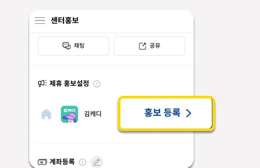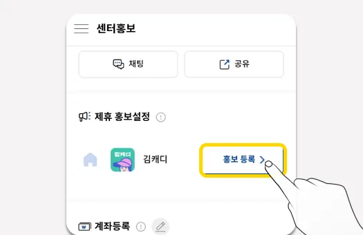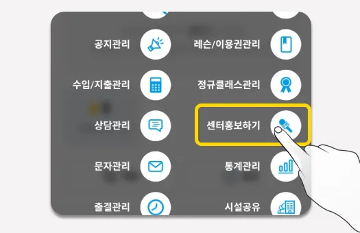 센터관리 메뉴에서, ‘센터홍보하기’를 선택해 센터홍보페이지를 호출합니다.