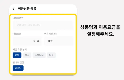 상품명과 이용요금을 설정합니다.