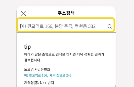 주소를 검색해 등록합니다.