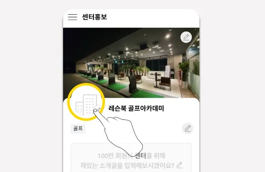 해당 영역을 선택해, 프로필 사진을 등록합니다. 센터의 CI나 로고 등, 사진을 자유롭게 등록/수정 할 수 있습니다.