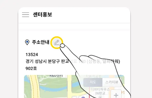 등록페이지에서 주소가 부정확하다면, ‘주소검색’버튼을 눌러 주소검색창을 호출합니다.