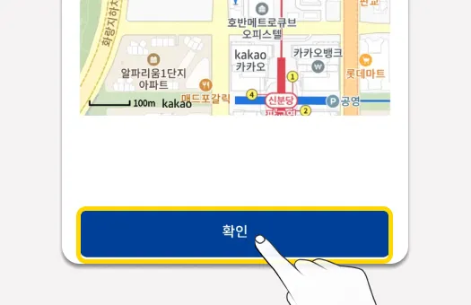 등록한 주소를 확인 후, ‘확인’버튼을 눌러 주소등록을 완료합니다.