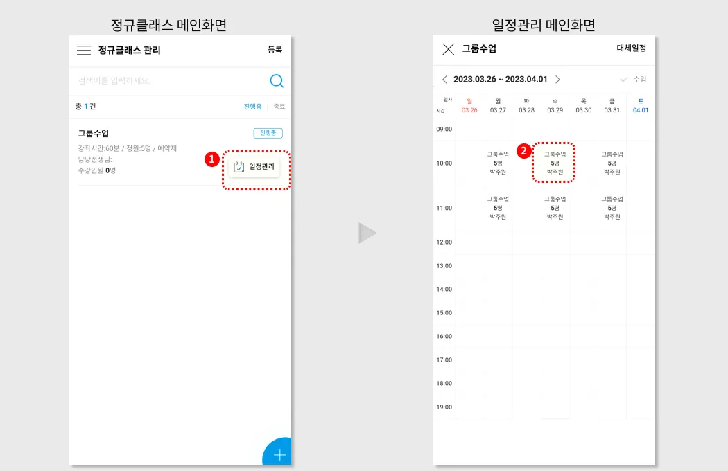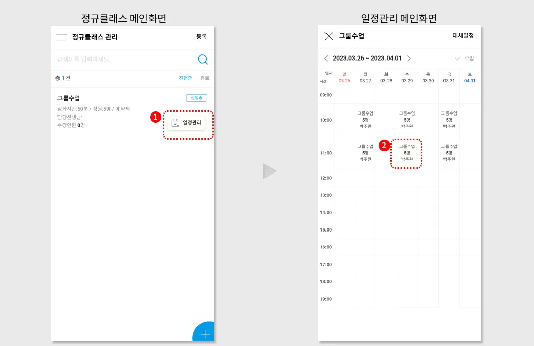 정규클래스 메인화면에서, 일정관리를 선택합니다.