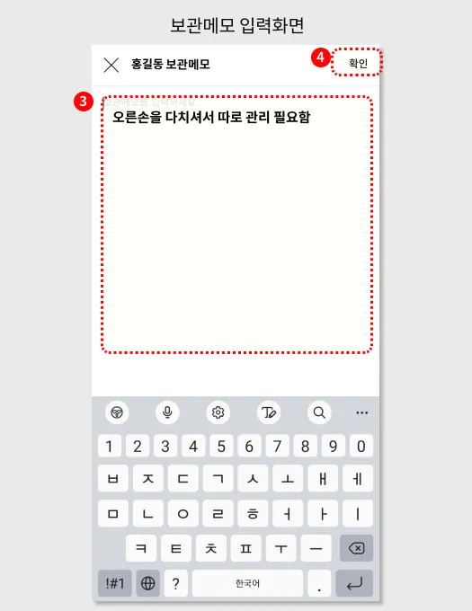 ‘보관메모’를 선택해, 보관메모입력화면을 호출합니다.