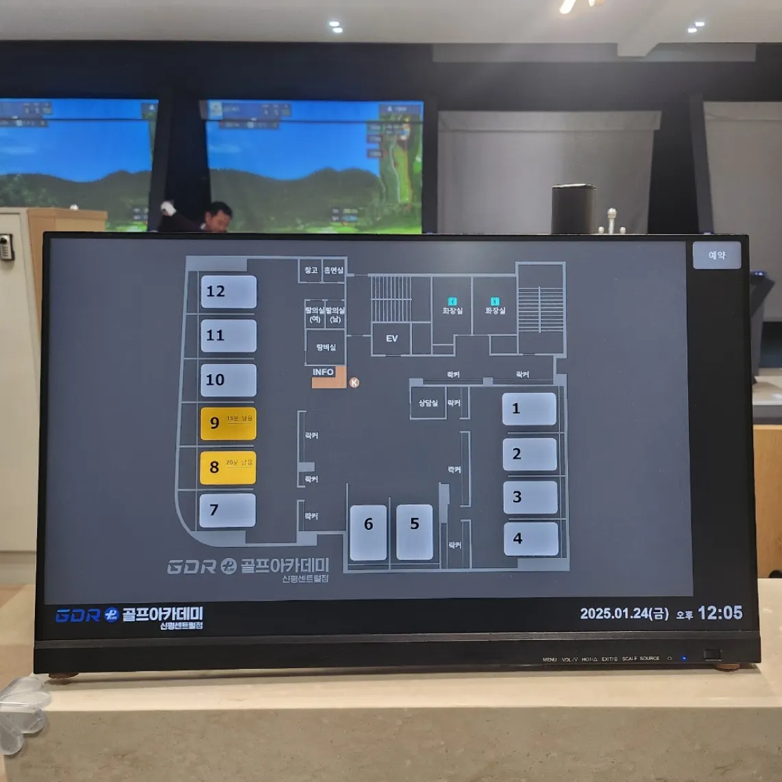 레슨북 시그니처 : 매장의 레이아웃을 그대로, 회원은 자신이 원하는 타석의 위치를 직관적으로 확인가능합니다. 타사의 키오스크에 레슨북 프로그램을 설치했습니다.