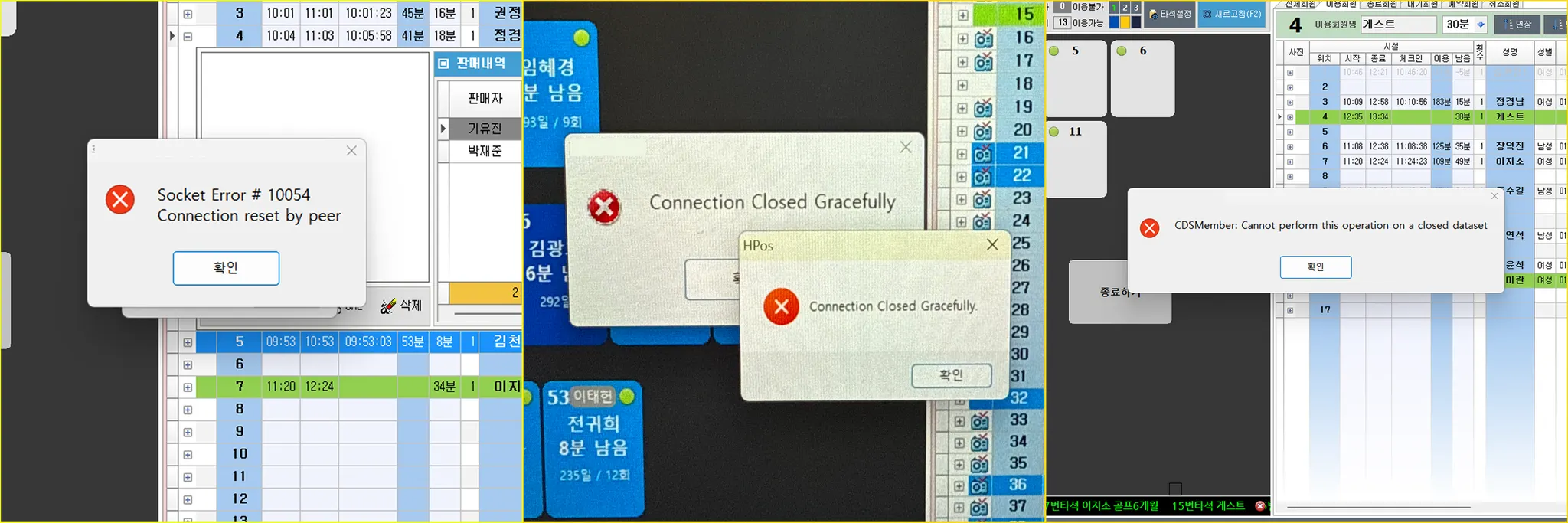HPOS에서 “Connection Closed…” “Soket Error..” 와 같은 오류메세지 창이 떠요.