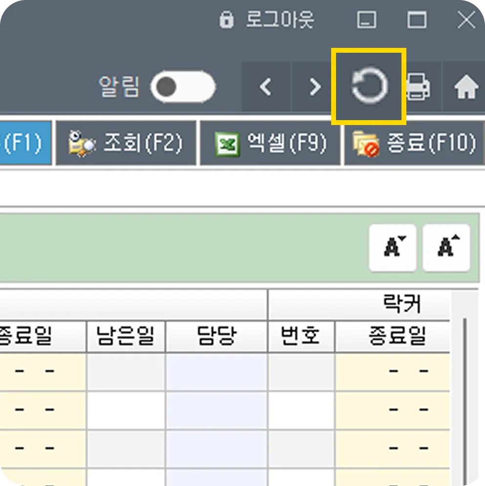 에러창을 ‘확인’버튼을 눌러서 닫으신 후에, 우측 상단 ‘새로고침’버튼을 한번 눌러, 통신을 재개합니다.