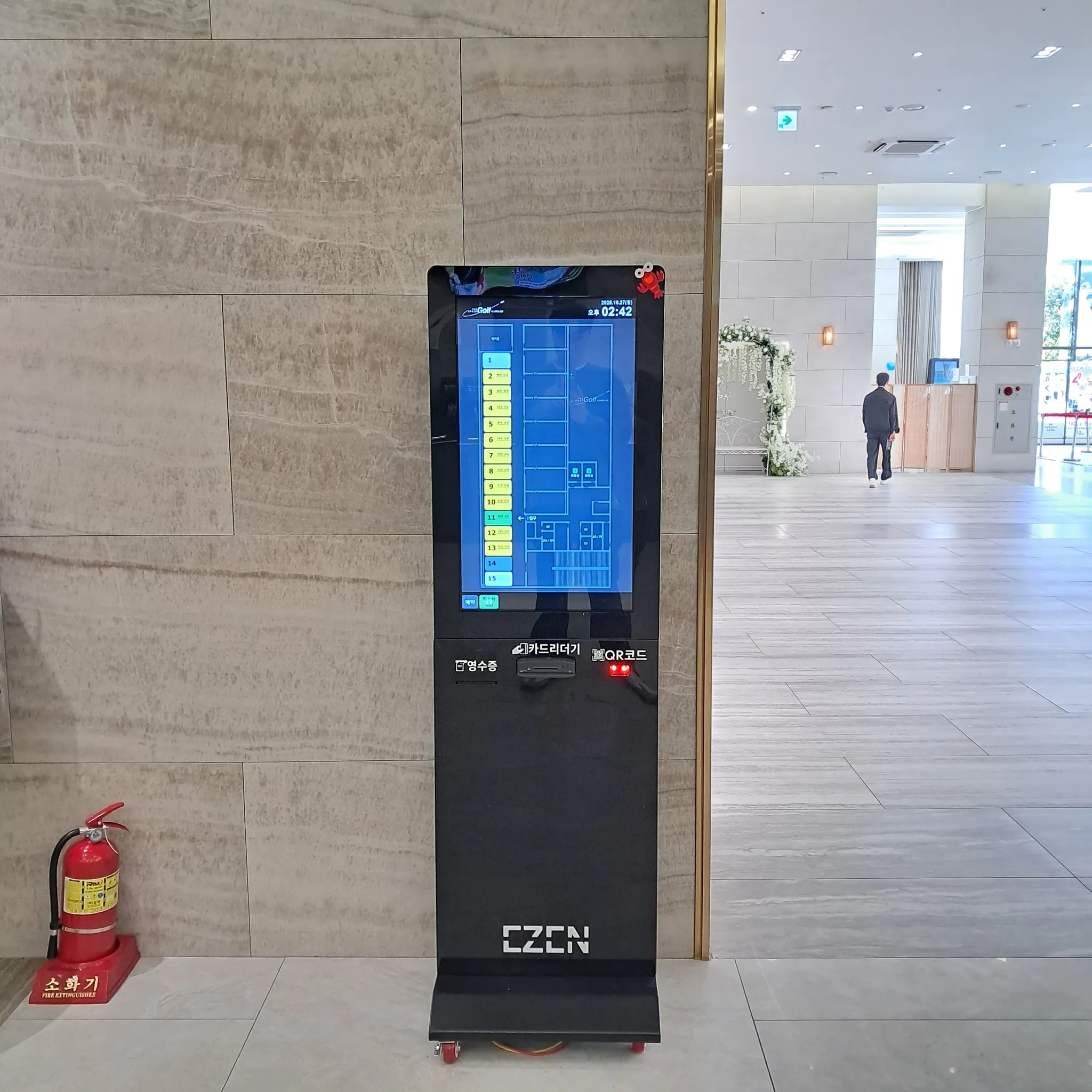 레슨북의 키오스크는 운영시간에 맞춘 자동on/off. 전력소모를 최대한 낮추는 최대절전모드. 주차등록, 타석제어, 타석배정, 타석예약을 할 수 있도록 합니다. 레슨북 키오스크는 부정사용의 여지를 원천차단할 수 있도록 회원번호 입력방식뿐 아니라 본인인증한 휴대폰으로 QR스캔을 해야 배정을 받을 수 있습니다.