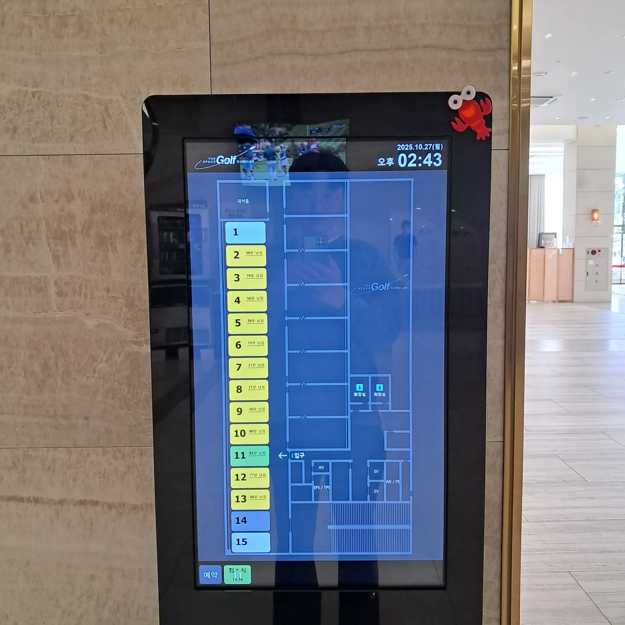 레슨북 시그니처 : 매장의 레이아웃을 그대로, 회원은 자신이 원하는 타석의 위치를 직관적으로 확인가능합니다. 타사의 키오스크에 레슨북 프로그램을 설치했습니다.