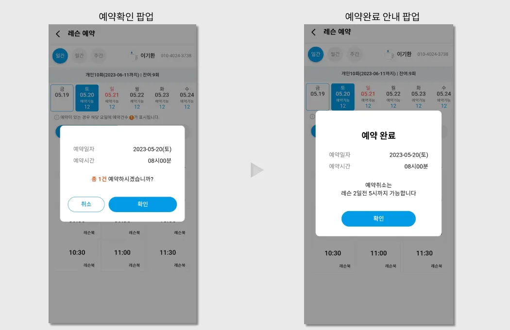 예약확인 팝업에서 예약일자와 예약시간을 확인하세요