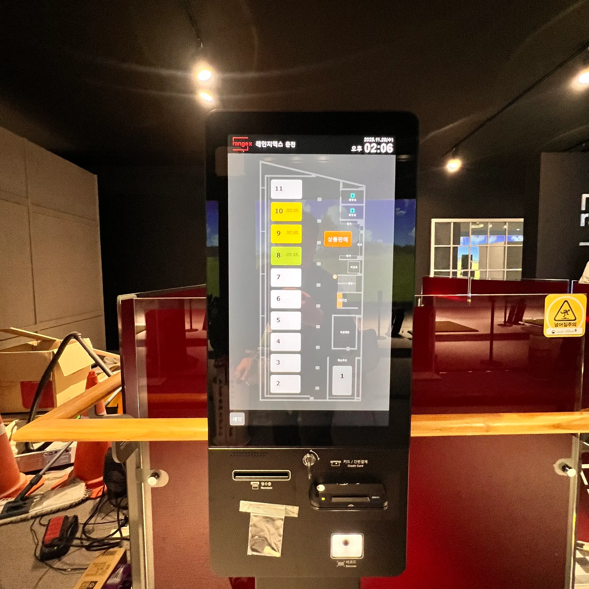 레슨북 시그니처 : 매장의 레이아웃을 그대로, 회원은 자신이 원하는 타석의 위치를 직관적으로 확인가능합니다. 타사의 키오스크에 레슨북 프로그램을 설치했습니다.