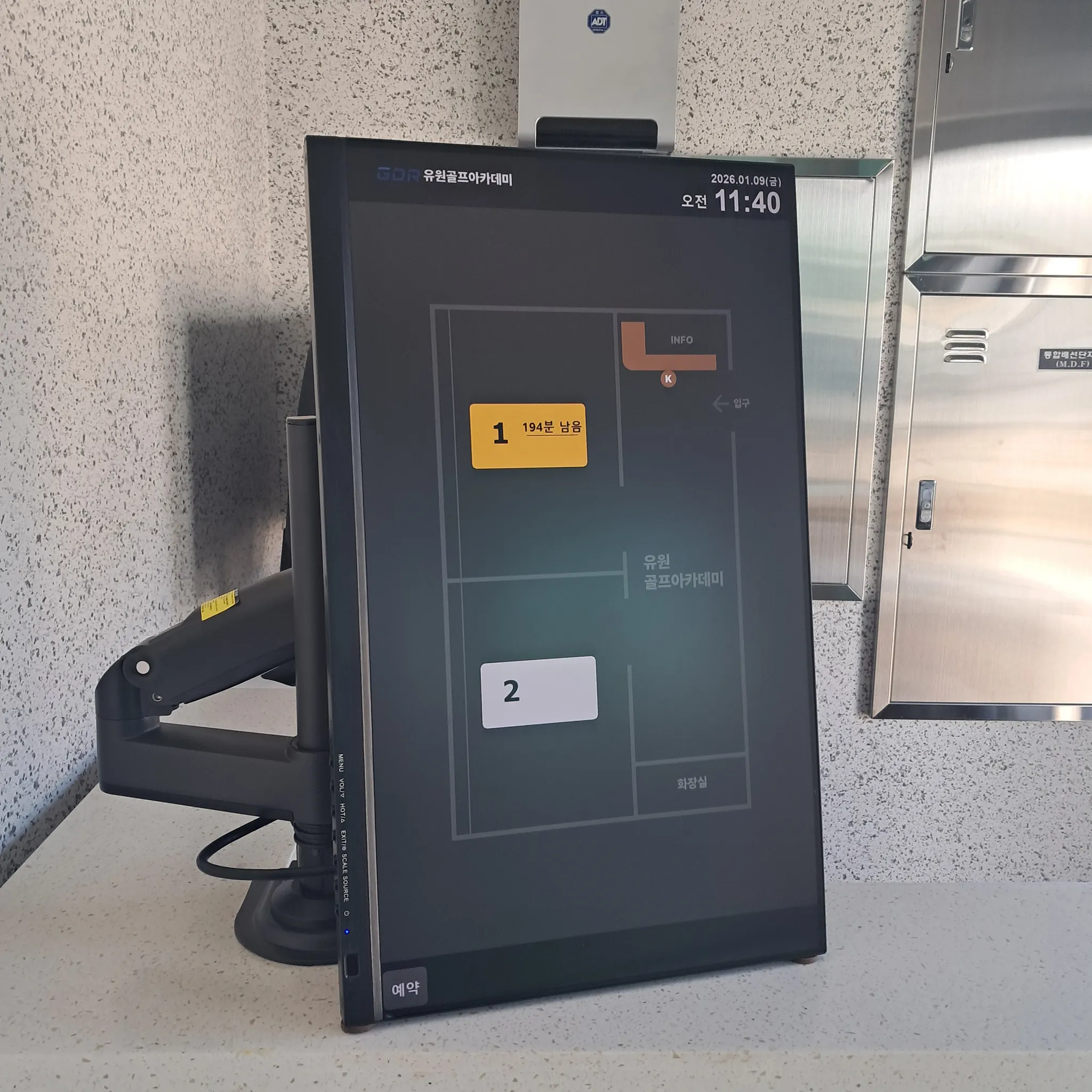 레슨북의 키오스크는 운영시간에 맞춘 자동on/off. 전력소모를 최대한 낮추는 최대절전모드. 주차등록, 타석제어, 타석배정, 타석예약을 할 수 있도록 합니다. 레슨북 키오스크는 부정사용의 여지를 원천차단할 수 있도록 회원번호 입력방식뿐 아니라 본인인증한 휴대폰으로 QR스캔을 해야 배정을 받을 수 있습니다.