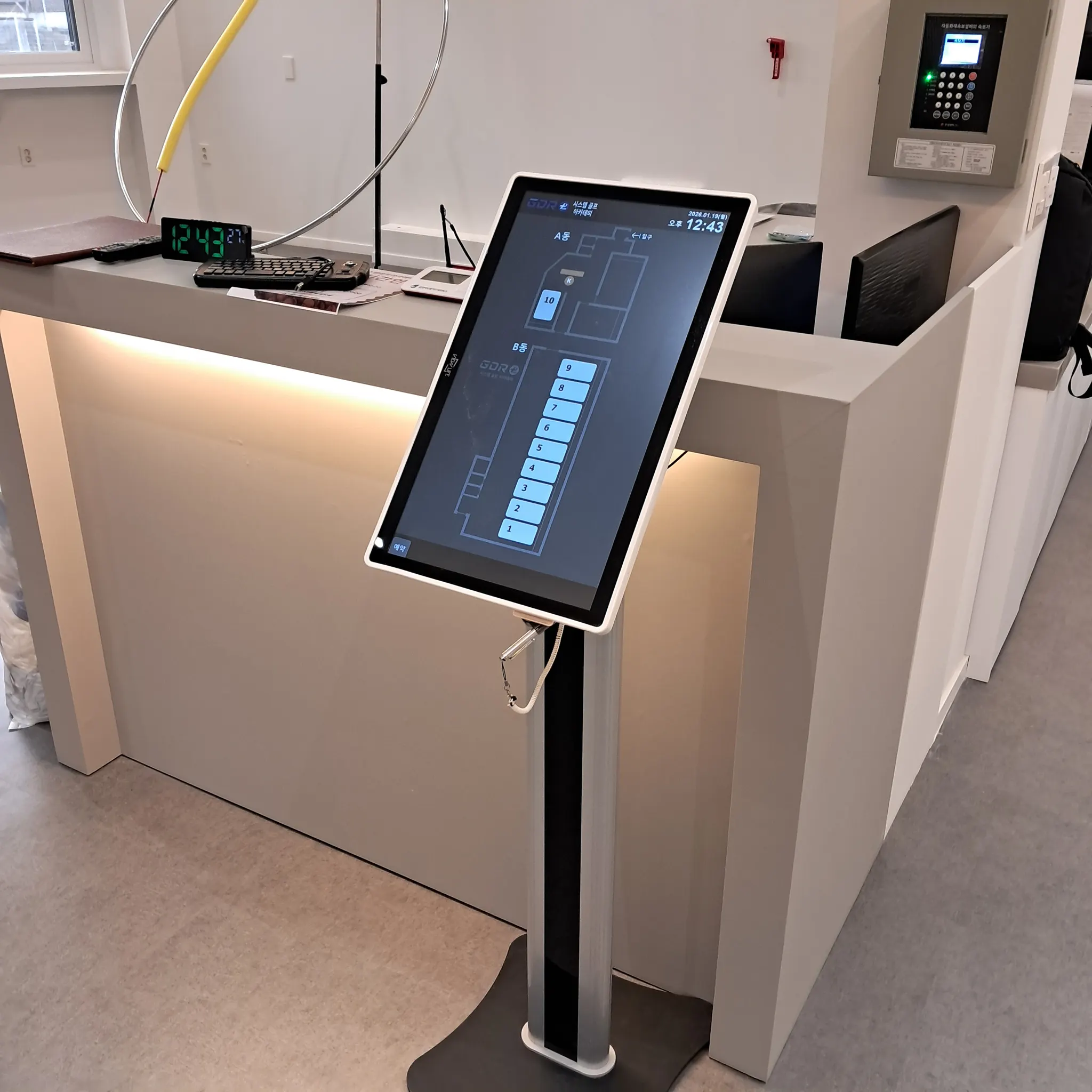 레슨북의 키오스크는 운영시간에 맞춘 자동on/off. 전력소모를 최대한 낮추는 최대절전모드. 주차등록, 타석제어, 타석배정, 타석예약을 할 수 있도록 합니다. 레슨북 키오스크는 부정사용의 여지를 원천차단할 수 있도록 회원번호 입력방식뿐 아니라 본인인증한 휴대폰으로 QR스캔을 해야 배정을 받을 수 있습니다.