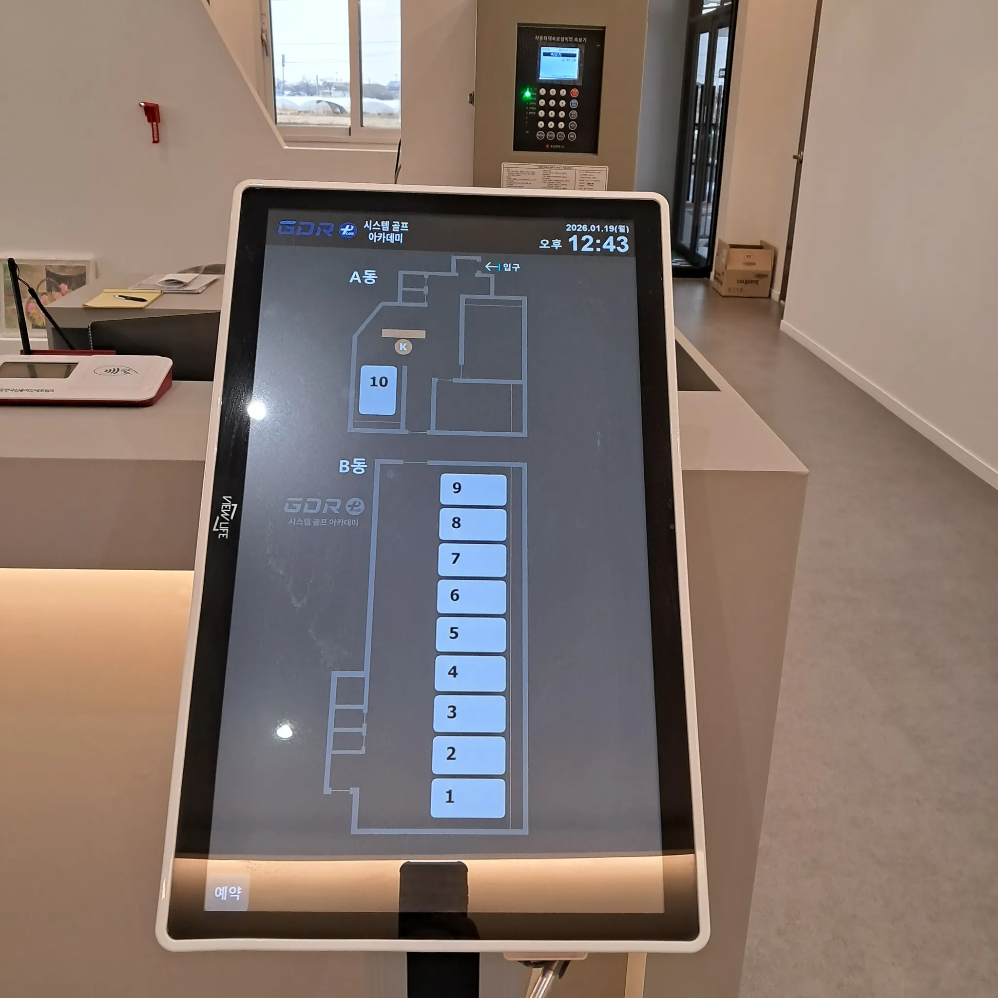 레슨북 시그니처 : 매장의 레이아웃을 그대로, 회원은 자신이 원하는 타석의 위치를 직관적으로 확인가능합니다. 타사의 키오스크에 레슨북 프로그램을 설치했습니다.