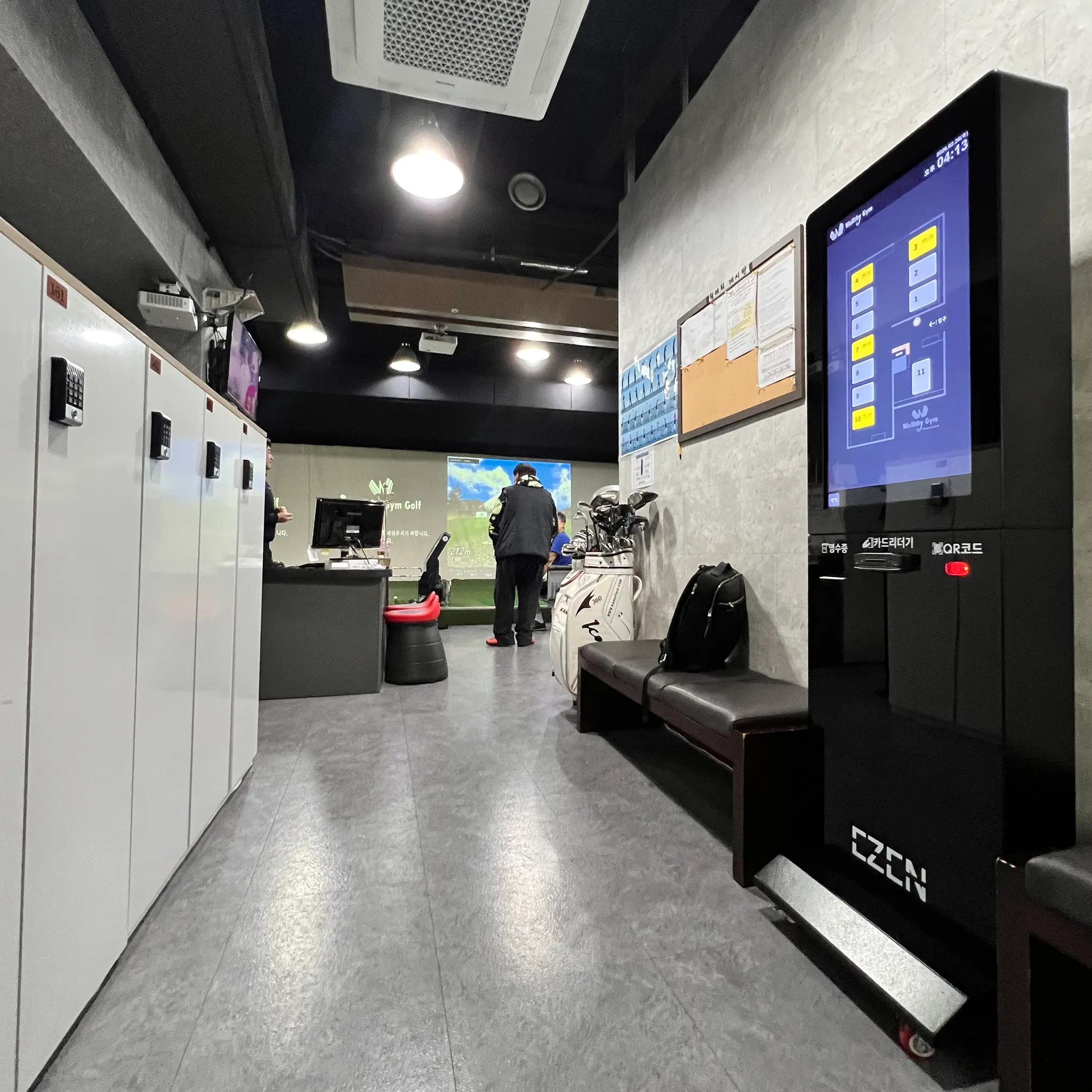 이제 회원은 프론트에서 안내를 받지 않아도 됩니다. 키오스크에서 직접 배정하고 원하는 시간에 이용을 시작합니다. 누가 타석을 배정해주는 구조가 아니라