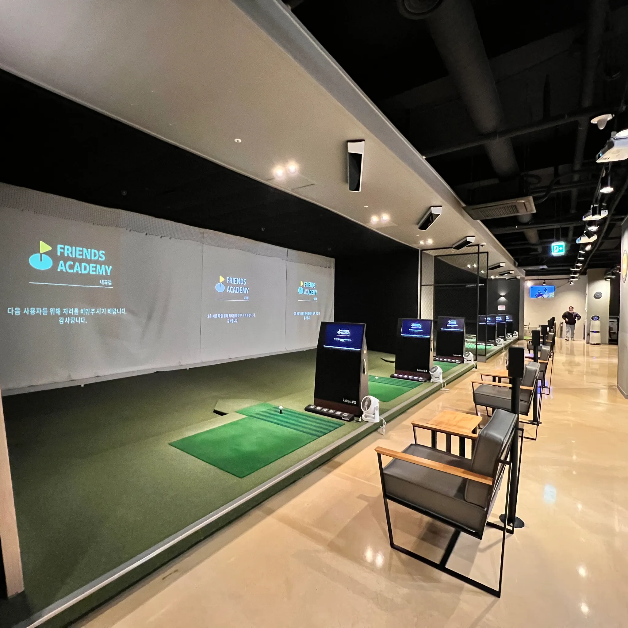프렌즈아카데미 내곡점은 카카오VX 시뮬레이터 12타석을 기반으로 초보자부터 중·상급자까지 모두 만족할 수 있는 균형 잡힌 연습 환경을 제공합니다.