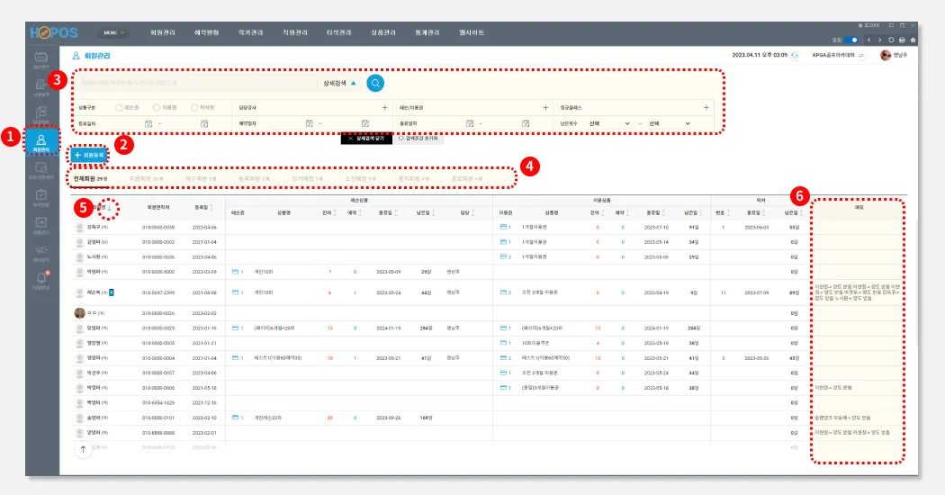 (HPOS Web메뉴 > 회원관리 > 회원상세)