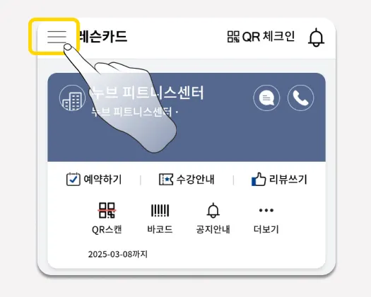 레슨카드 좌측상단, 메뉴를 선택합니다.