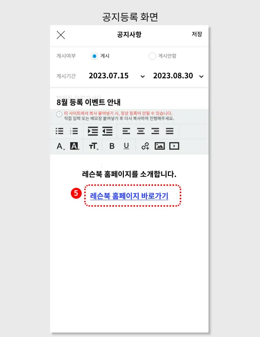 내용을 확인하시고, 저장을 눌러 공지등록을 완료하세요.