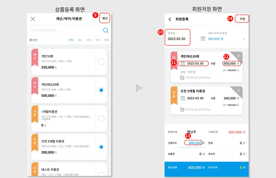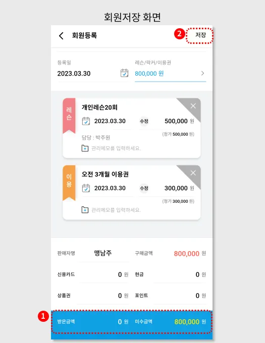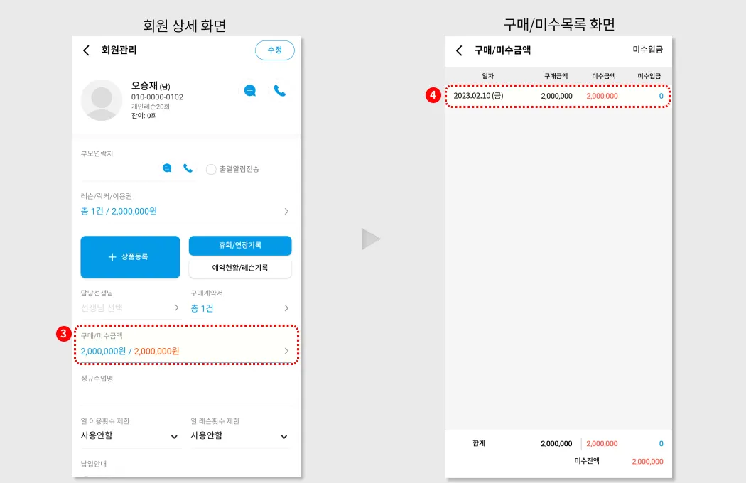 회원등록 시에, 회원이 바로 결제를 하지않은 경우, 미수금 등록을 해 관리할 수 있습니다.